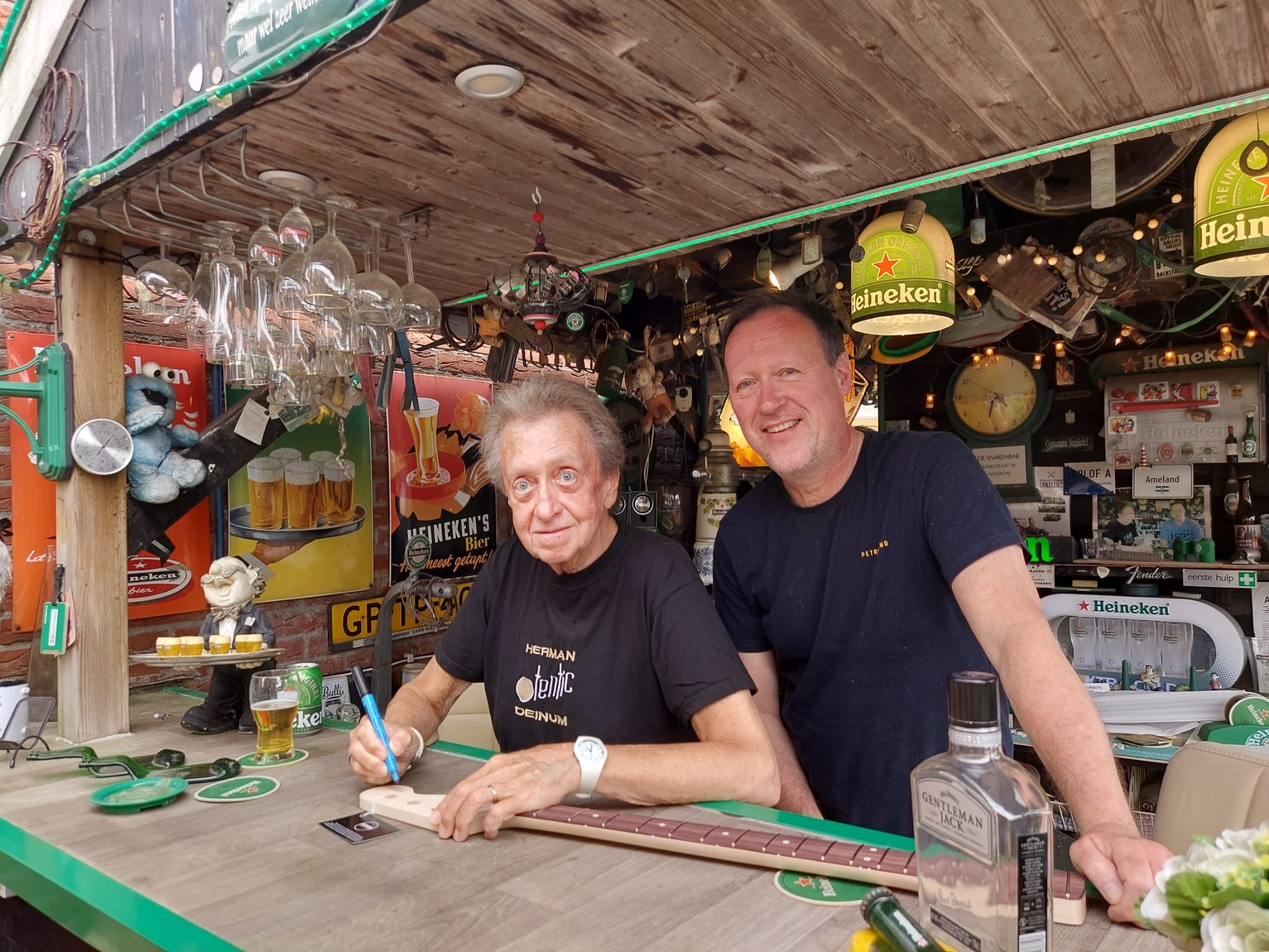 Op de foto zie je de legendarische Herman Deinum één van de halzen tekenen van zijn nieuwe Otentic signature basgitaar.