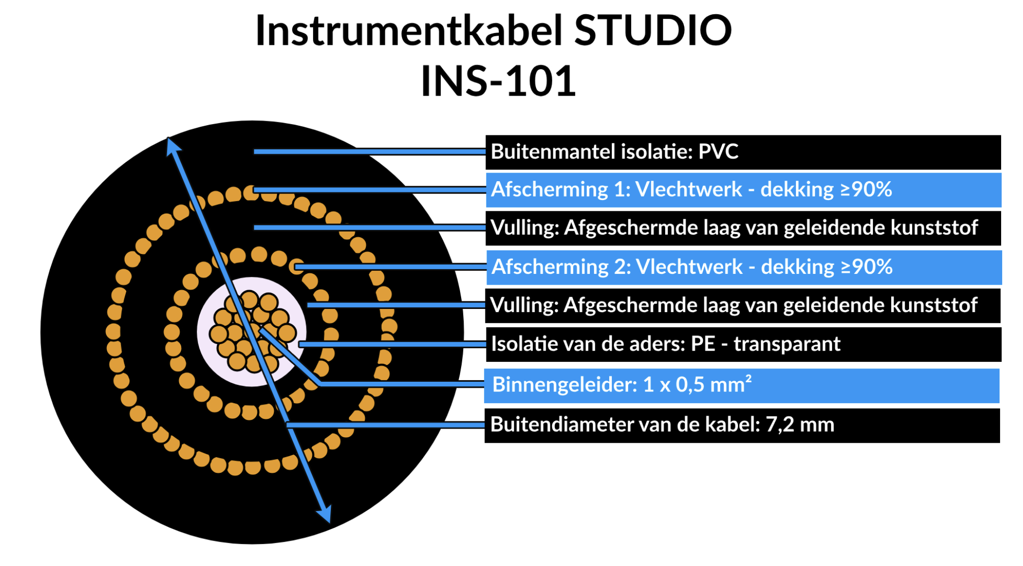 Dankzij de robuuste bouw is de INS-101 kabel uitzonderlijk bestand tegen mechanische beschadigingen, UV-straling en de meeste chemische stoffen die in een studio- of podiumomgeving kunnen voorkomen. Het is een veelzijdige oplossing die betrouwbaar presteert, zowel in gecontroleerde studiocontexten als in meer veeleisende buitenomgevingen.